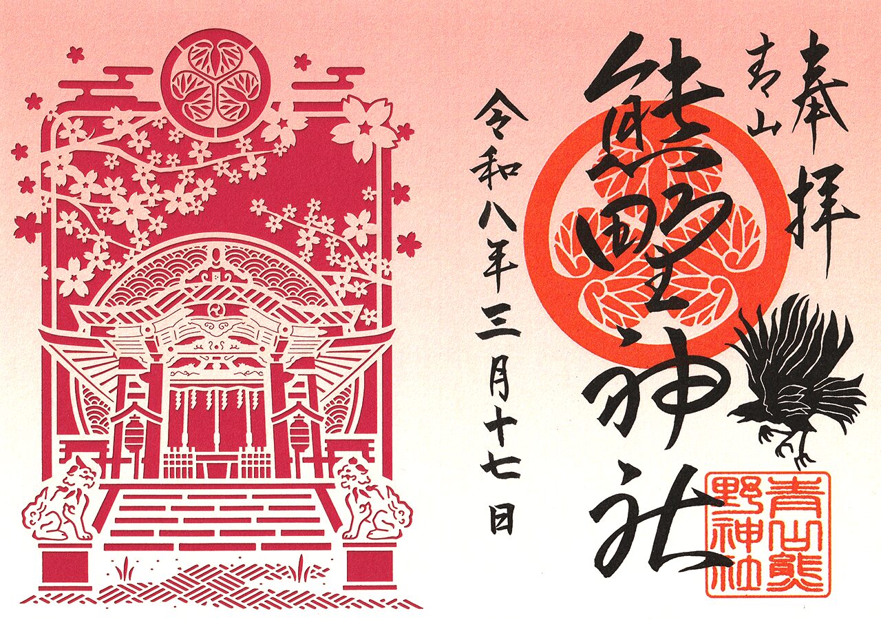 朱印には葵紋と「青山熊野神社」の印、さらに神使の八咫烏印。