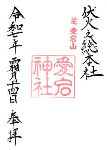 御朱印は「愛宕神社」の朱印と、「芝愛宕山」の印判のシンプルなもの。
