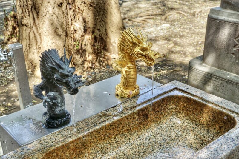 手水舎は2頭の龍。