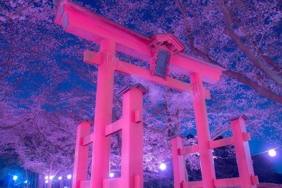 境内は彫刻が見事な社殿や、裏参道の桜並木がとても美しい事で知られる。