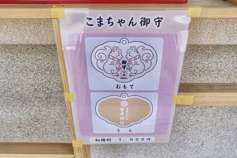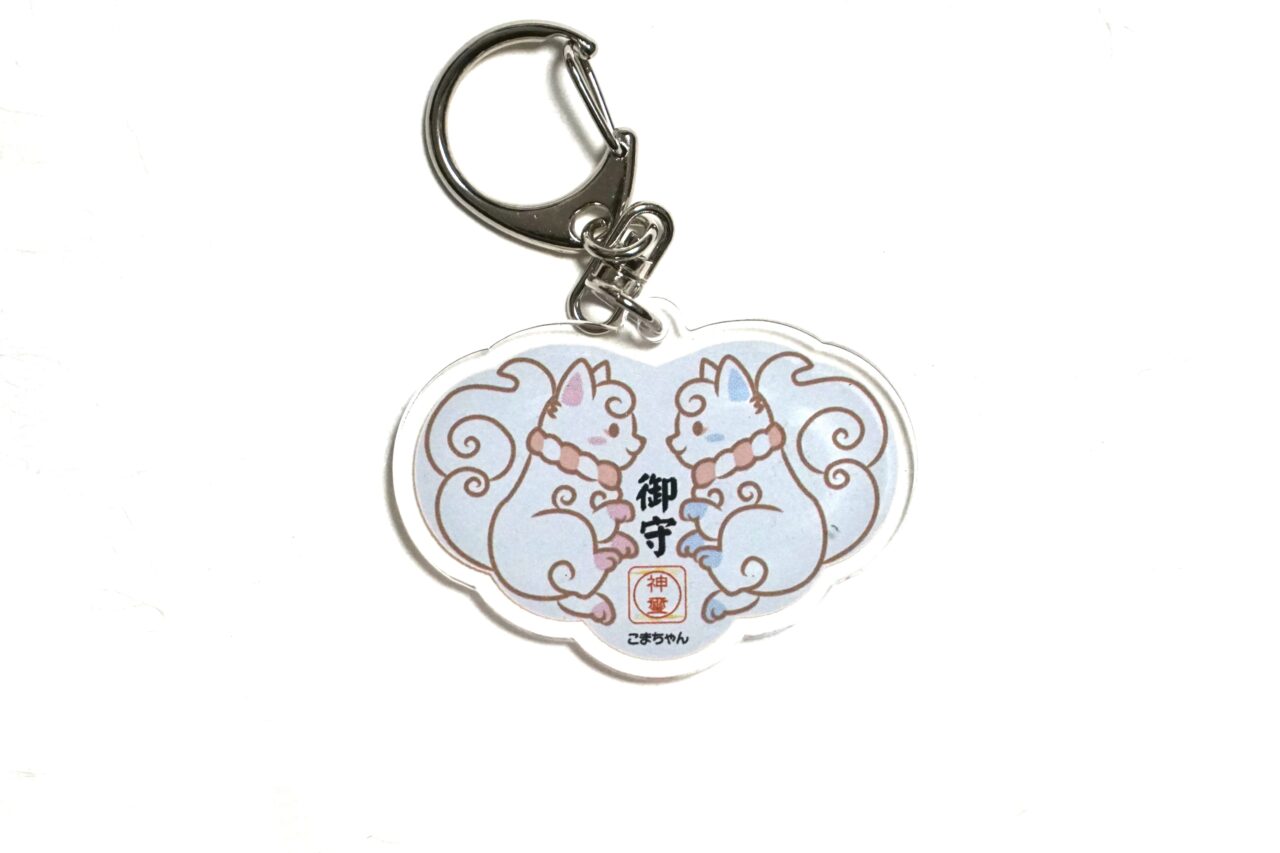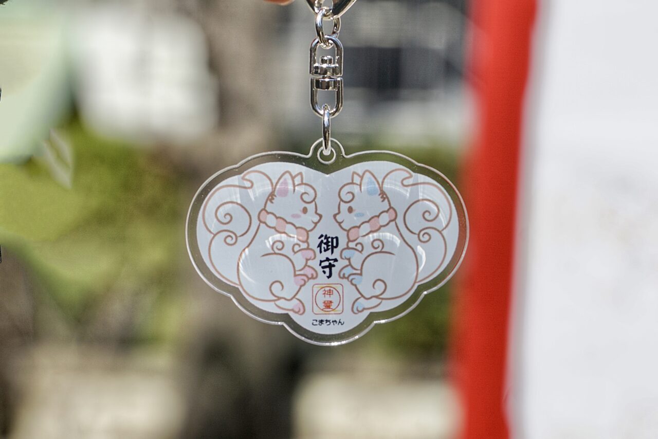 境内の狛犬は「子宝」の象徴として親しまれており、最近はキャラクター化したこまちゃんも人気。