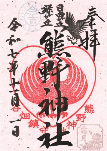 表面には熊野神社の社号から「熊」、裏面には熊野信仰の神使である「八咫烏」をデザイン。