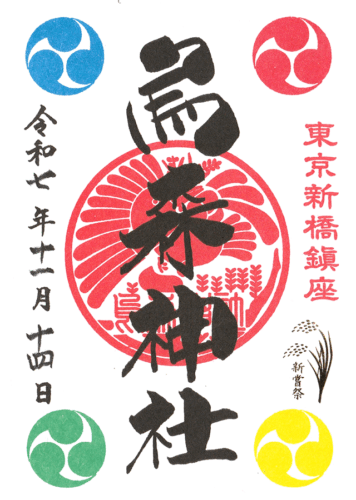 また、椙森神社(日本橋)柳森神社(神田)と併せ「江戸三森」として古くから崇敬されています。明治六年にはこれまでの烏森稲荷の社名を烏森神社と改め、新橋烏森の守り神として多くの人々の信仰を得ています。現在の御社殿は昭和四十六年に造営されました。(頒布のリーフレットより)