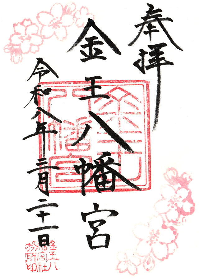 以前は「金王八幡神社」の朱印だったが現在は「金王八幡宮」の朱印となっている。(画像は例大祭限定御朱印)
