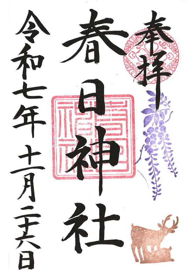 御朱印は「春日大社」の朱印と、右上に八つ藤の社紋。