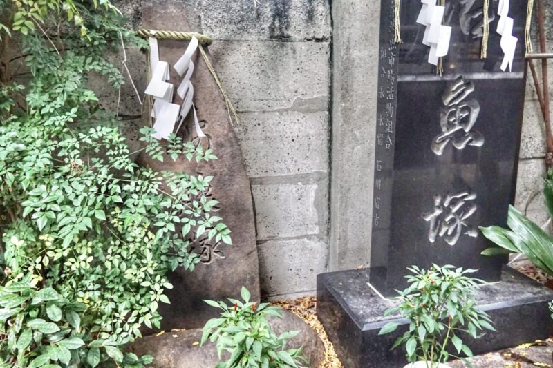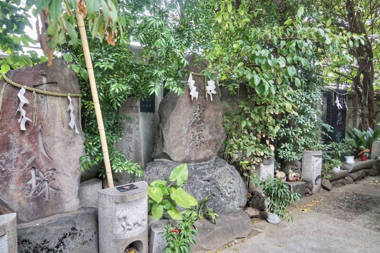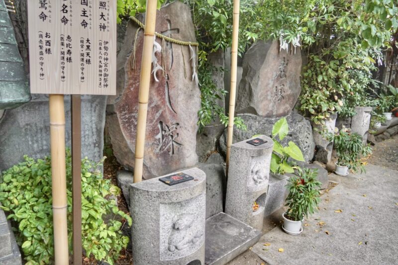 築地市場が開かれてからは、そうした市場関係者からの崇敬が篤く、多くの碑が奉納されている。