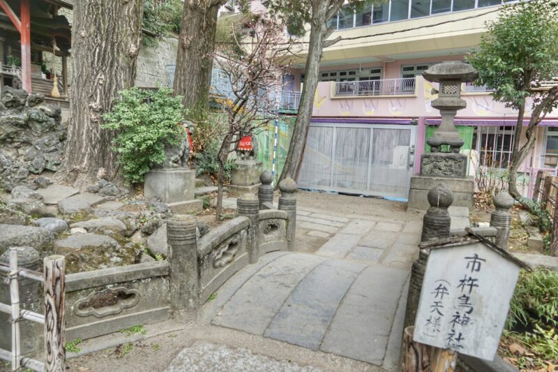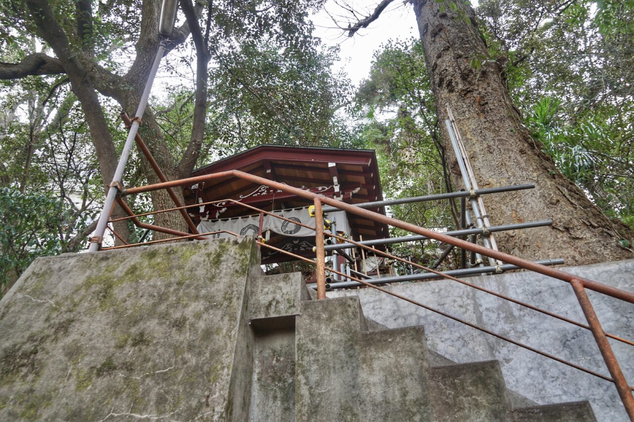 平日は園児のために石段下の部分を開放しているため一般参拝者はこちらから入る事はできない。