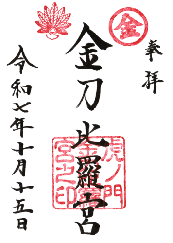 2015年に頂いた御朱印は「金刀比羅宮」の朱印であったが、2019年に頂いた御朱印は「虎ノ門金比羅宮之印」と朱印部分も変更に。