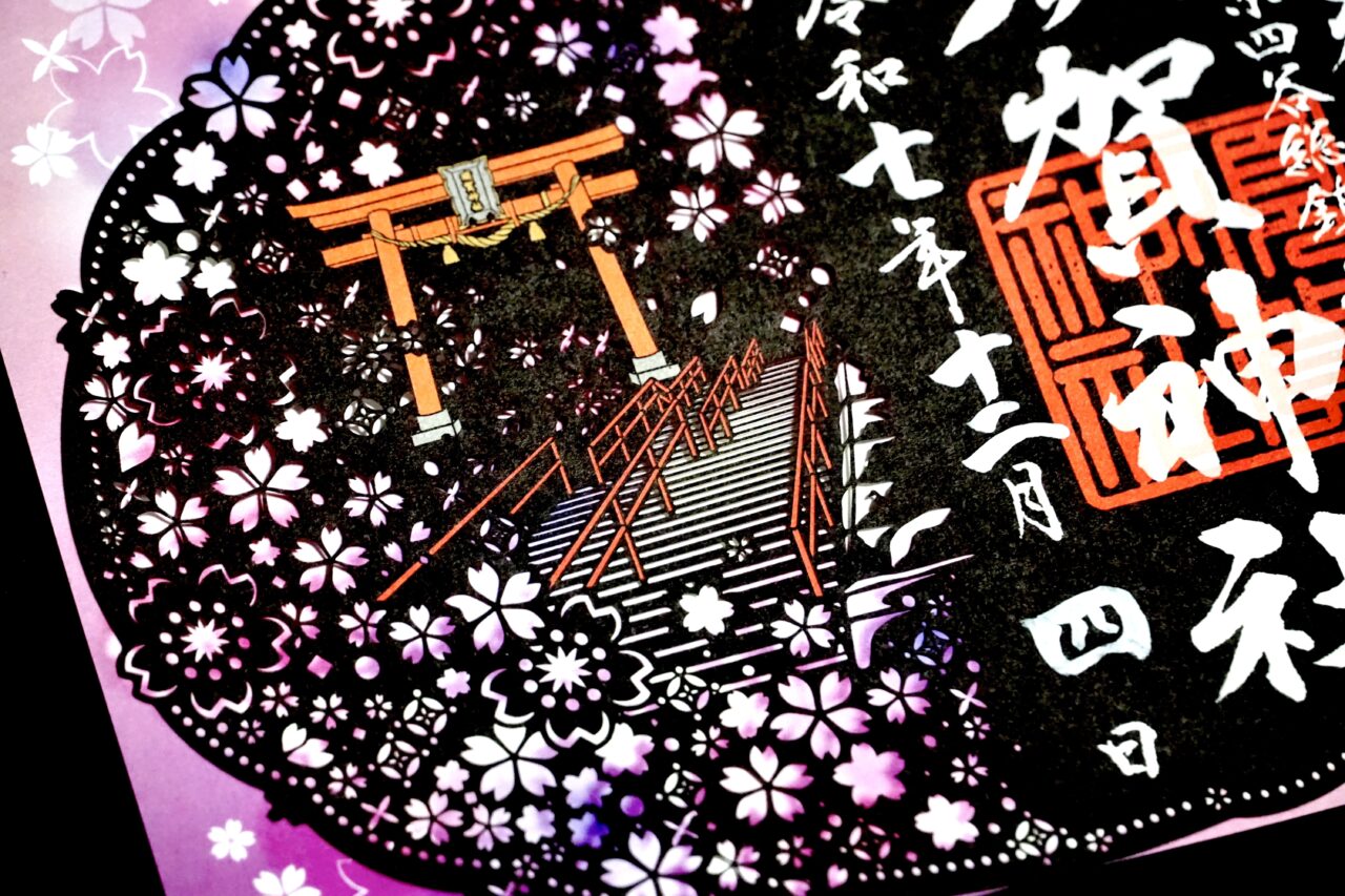 桜と男坂や鳥居がデザインされた美しい御朱印。